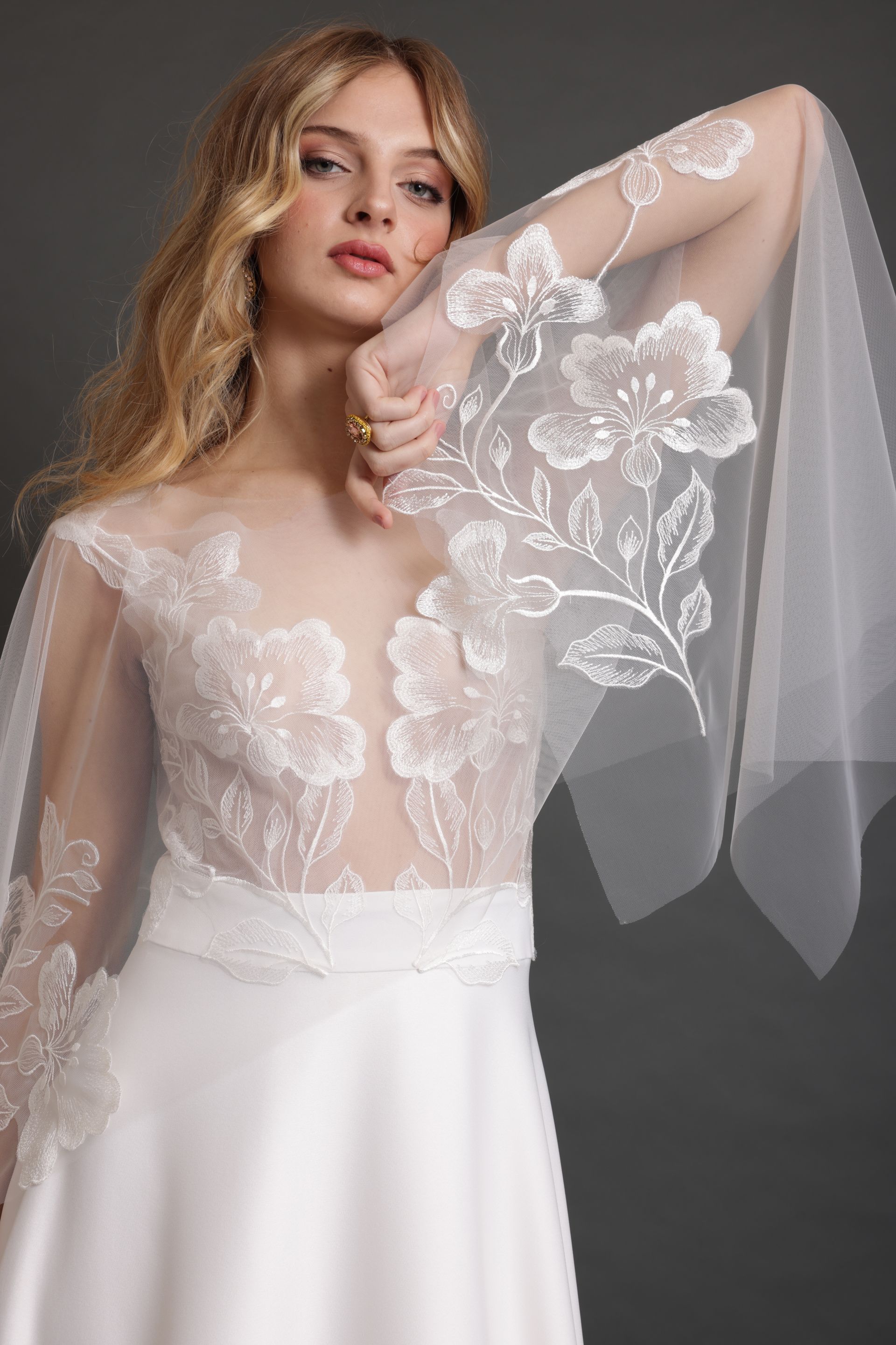 L'essenza autentica della sposa emerge in una collezione fatta di sete croccanti, pizzi francesi e architetture leggere. Benedetta Passalacqua disegna un viaggio tra terra e sogno, dove il lusso è un sussurro e ogni abito è il riflesso dell'anima della Sposa nella Visione di Benedetta Passalacqua